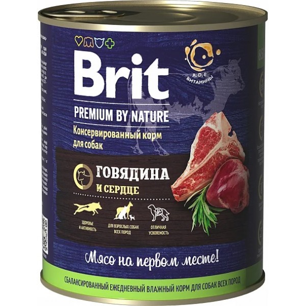 Модель: Brit Premium by Nature Говядина и сердце 850г 40216