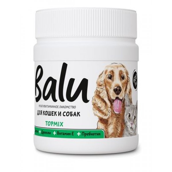 BALU TOPMIX Мультивитаминное лакомство для кошек и собак содержит биотин, витамин Е, пребиотик.