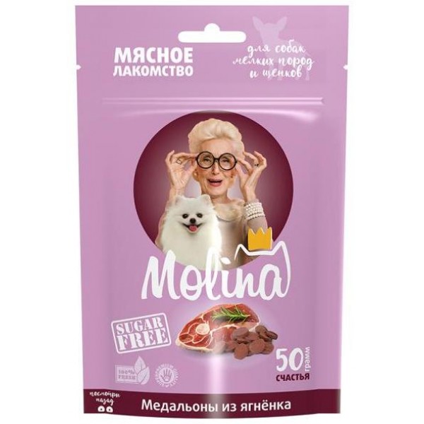 Молина Лакомство для собак всех пород и щенков Медальоны из ягненка, 50г