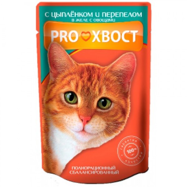 Консервы для кошек proхвост — с цыпленком и перепелкой в желе — это полнорационное сбалансированное питание для взрослых кошек. корм разработан с учетом всех питательных потребностей кошек. содержит высококачественные натуральные ингредиенты, белки, жиры, углеводы, витаминно-минеральный комплекс и таурин.